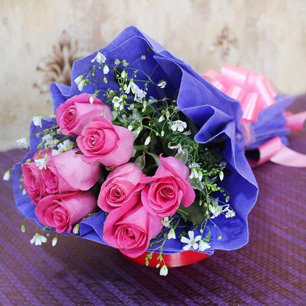 / 8 Pink Roses Flower Bouquet